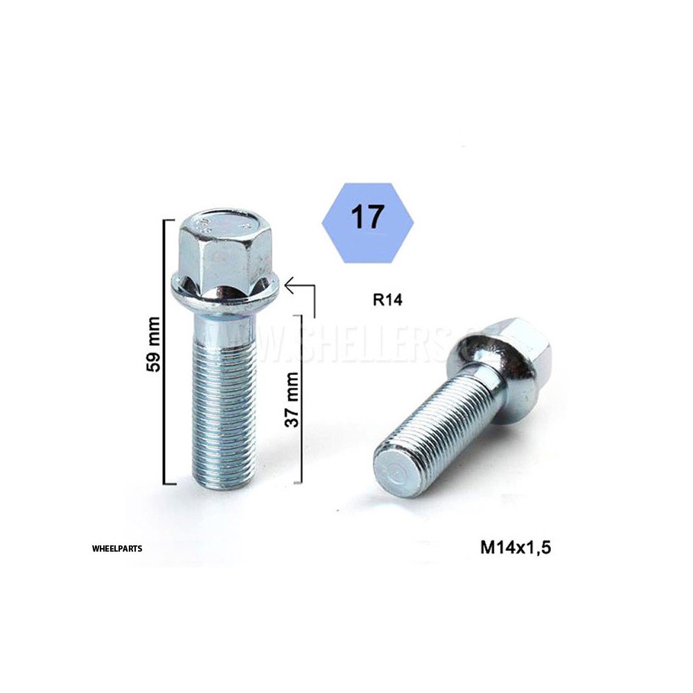 Wheel bolt M14x1.5x37 Ball seat H17 Silver R14