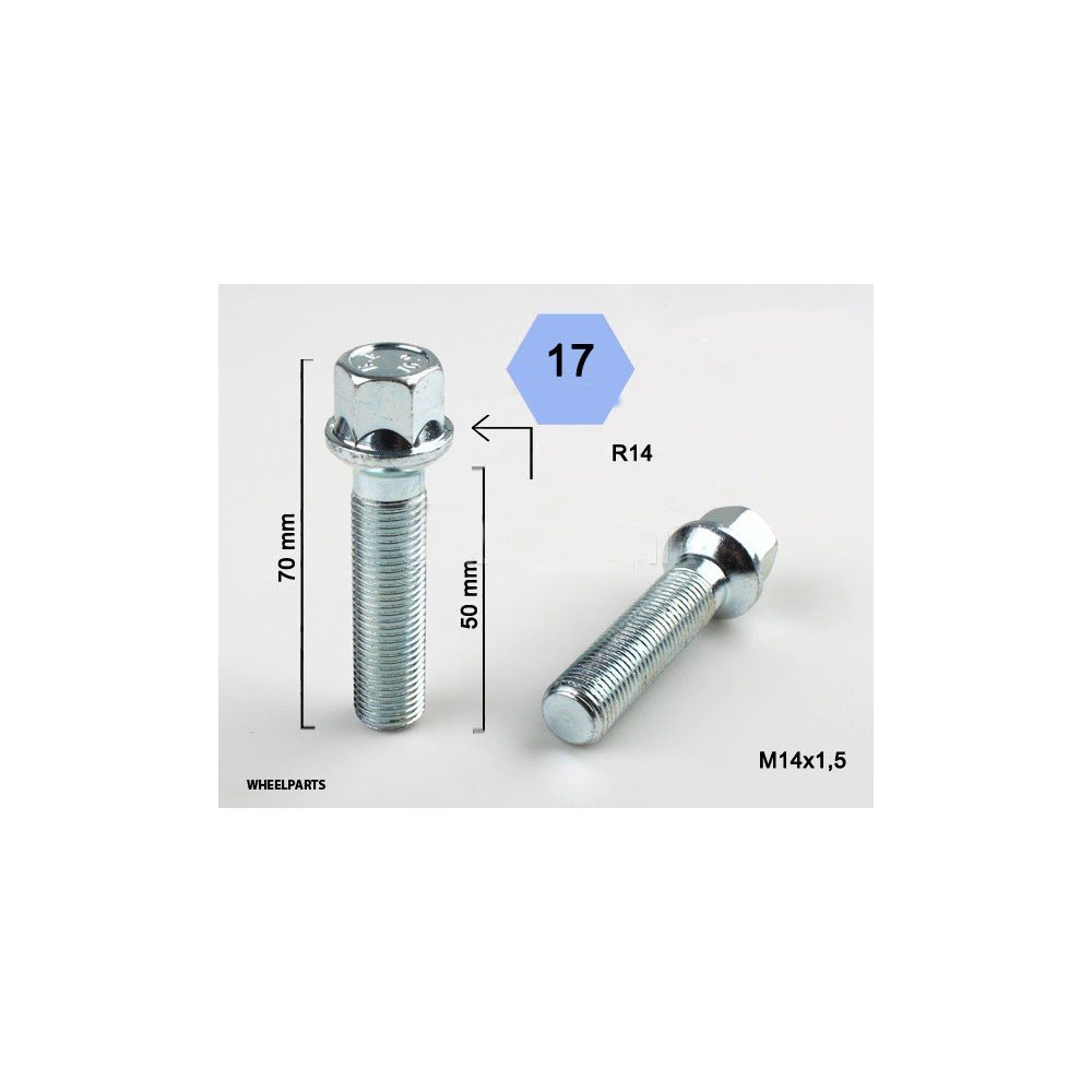 Wheel bolt M14x1.5x50 Ball seat H17 Silver R14