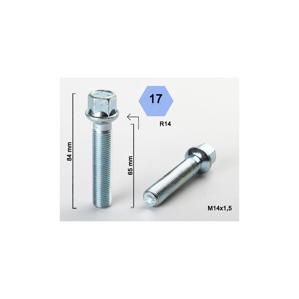 Wheel bolt M14x1.5x65 Ball seat H17 Silver R14