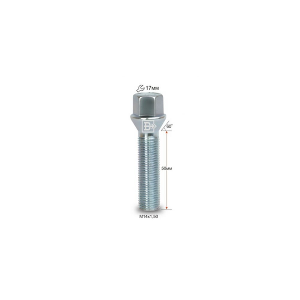 Wheel bolt M14x1.5x50 Conical H17 Silver