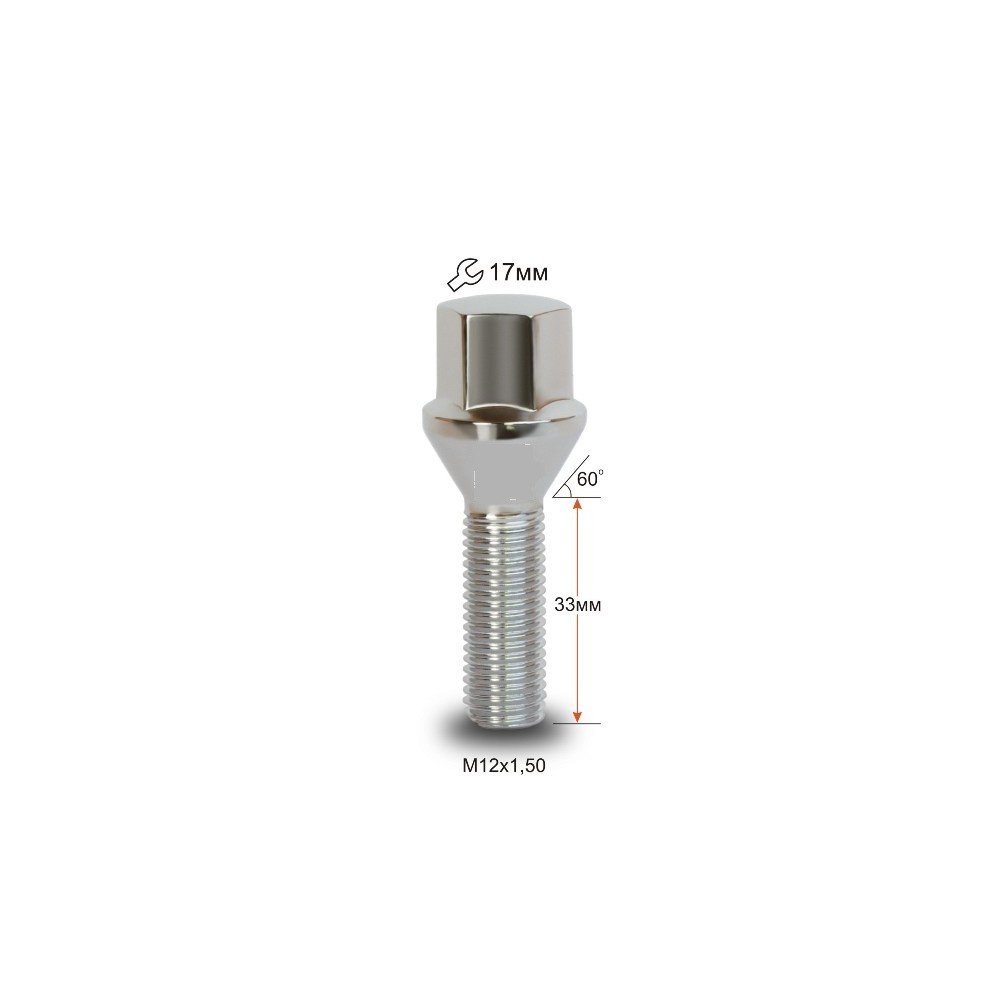 Wheel bolt M12x1.5x33 Conical H17 Silver